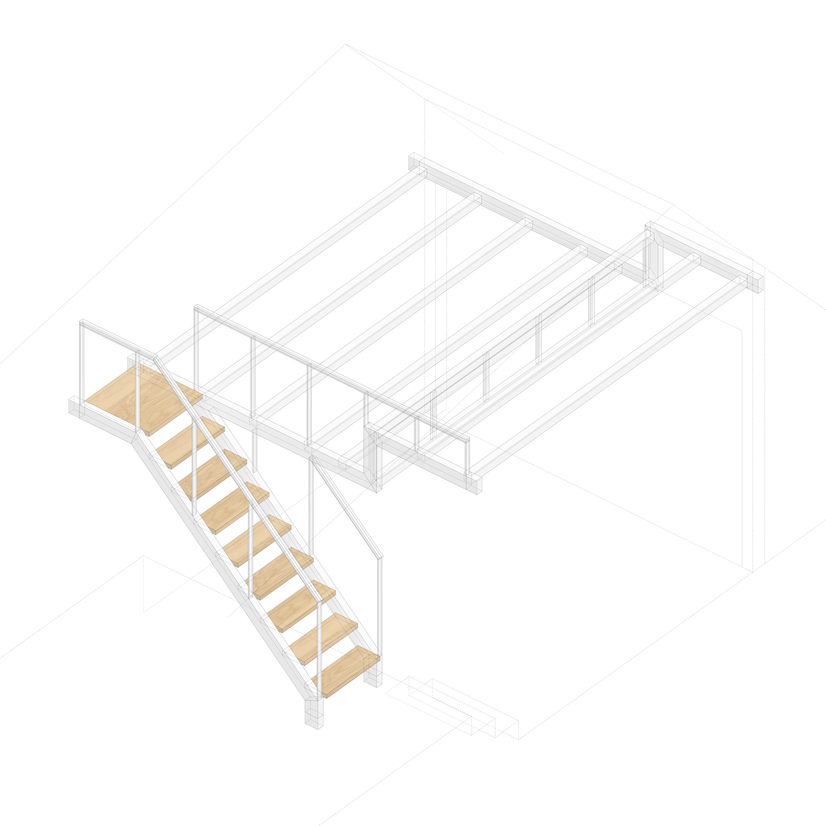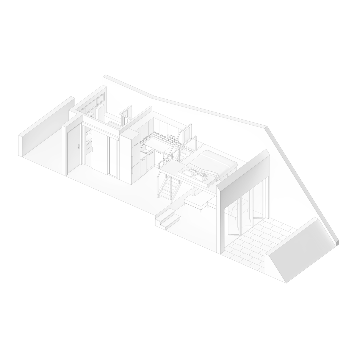 En esta vivienda vacacional de dimensiones reducidas aprovechamos la altura libre existente para localizar la zona de descanso y así ampliar el espacio destinado a cocina y salón.