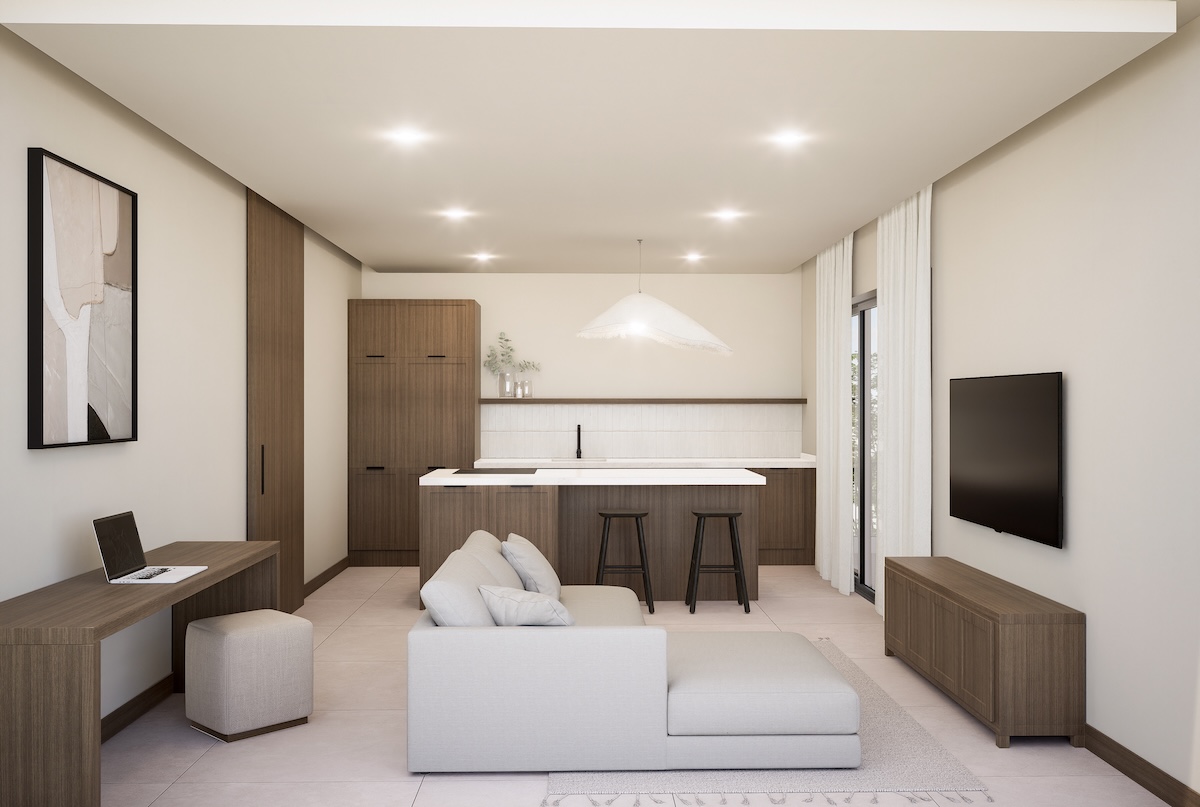 Partimos de una estructura existente y estudiamos sus posibilidades de ampliación. Diseñamos esta vivienda vacacional con su terraza accesible desde todas las estancias y el baño como elemento de circulación.