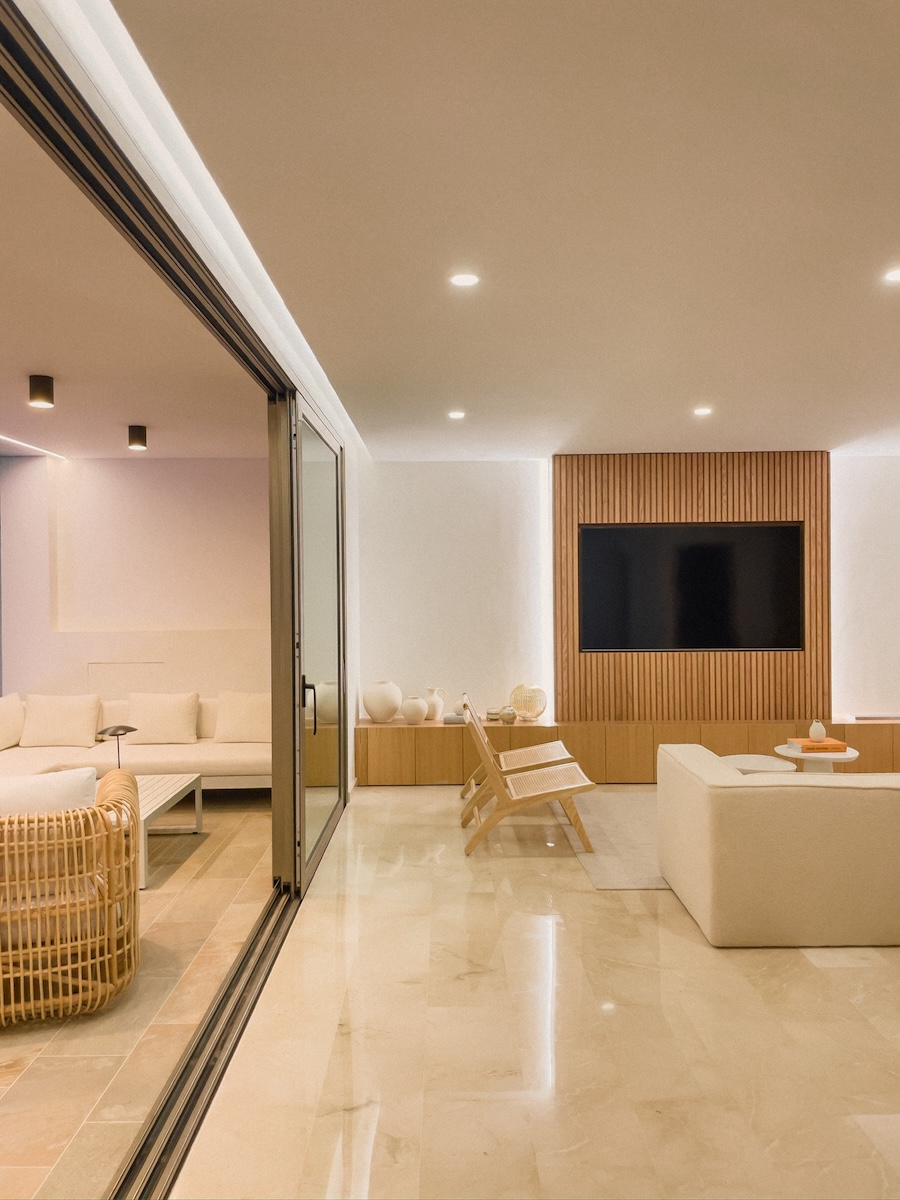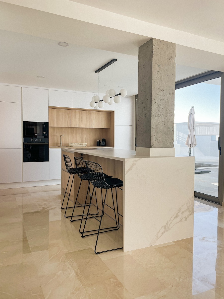 Con la construcción de la piscina y la eliminación de un tabique, la terraza, la cocina y el salón de esta vivienda pasan a funcionar como un único espacio.