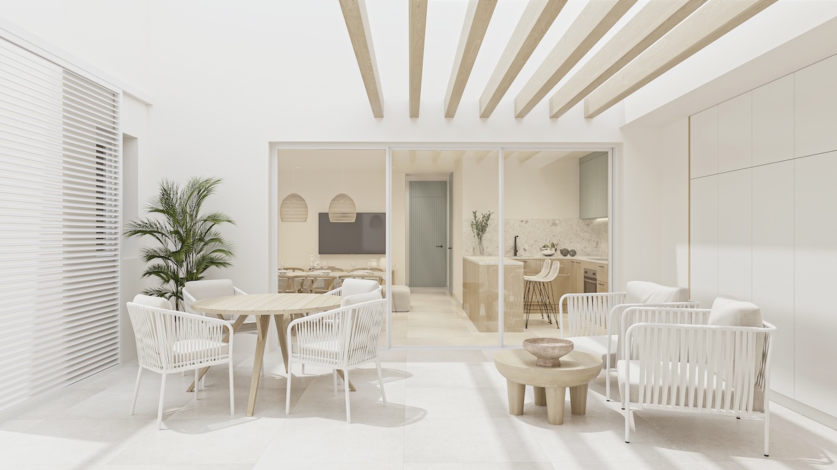 Vivienda entre medianeras que diseñamos a partir de su terraza interior y que relacionamos con la calle a través de un vestíbulo que sirve de transición y aporta intimidad.